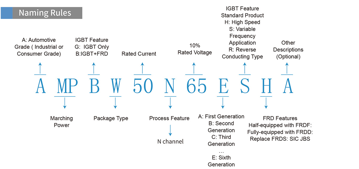 | AMPBW50N65E | 650 | 50 | 1.6 | 1.2 | 1.12 | TO-247 | MP |