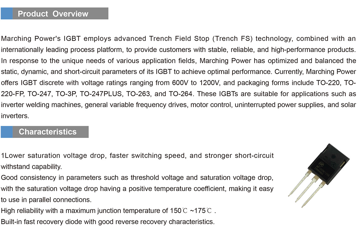| MPBW40N65EH | 650 | 40 | 1.5 | 0.81 | 0.85 | TO-247 | MP |