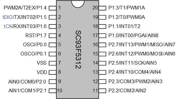 20PIN,超高速32位总线1T 8051内核Flash MCU,512B SRAM,8KB Flash,128B独立EEPROM,12位ADC,3路8+2位PWM,3个定时器,UART,SPI,PGA